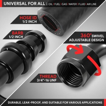 Remark: 8AN to 1/2″ Barb, 8AN thread size is 3/4″-16UNF