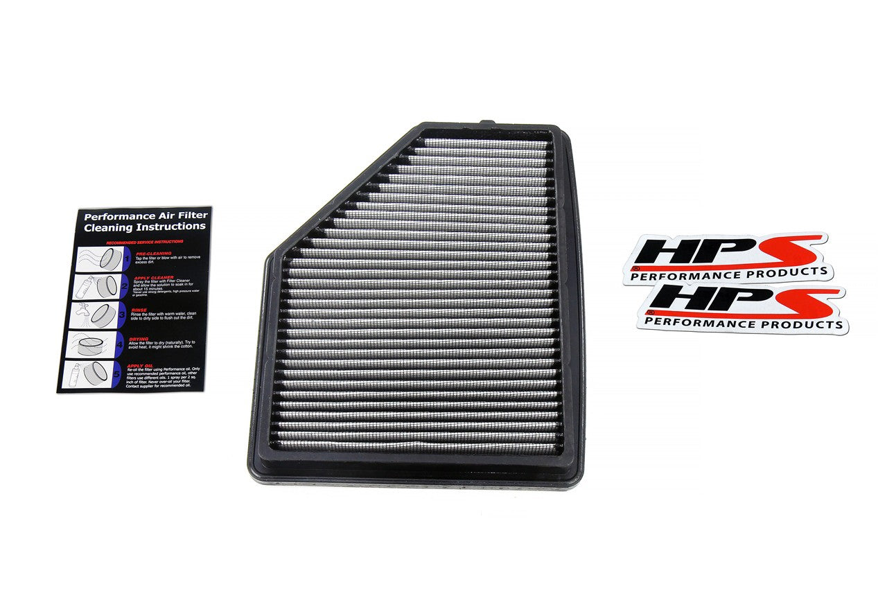 HPS Performance Drop-In Air Filters are a direct replacement for your vehicle’s engine air filter. HPS uses a low pressure injection molding process to produce the panel filter’s frame, ensuring a high quality product that allows for up to 25% more airflow than the leading brand. The woven cotton filtration media is encased between durable stainless steel mesh to retain its rigid pleats. This filter is coated with a specially formulated synthetic oil that traps fine particles within the double-layered woven cotton media. It installs in just minutes using little to no tools, depending on the vehicle. HPS Performance Drop-In Air Filters should be serviced every 30,000 miles using the HPS Performance Air Filter Cleaning Kit to maintain optimal filtration and airflow. Manufactured using only high-quality materials, this HPS Performance Drop-In Air Filter is engineered to last and is covered under HPS’s 10-year limited lifetime warranty.