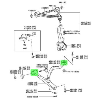 Installation: Replace for Front Lower Control Arm Bushing (Driver Side Or Passenger Side). Bushing is Identical for both side. Purchase 2 sets if you need to replace both Drive and Passenger side. Will require to be pressed in